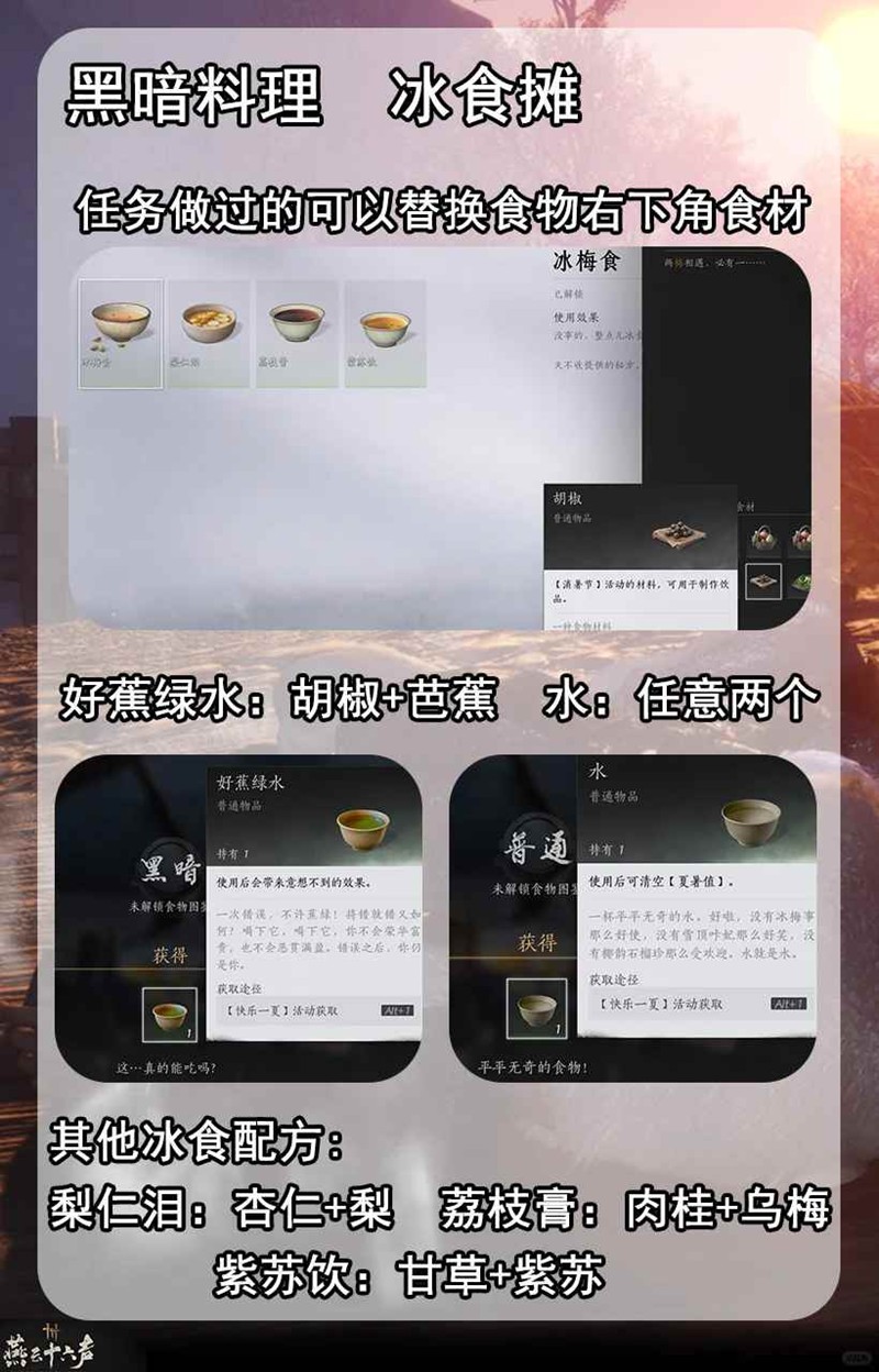 以上就是燕云十六声快乐一夏活动黑暗料理攻略的全部内容了,更多游戏资讯,攻略内容敬请关注,您的支持是我们努力的动力!