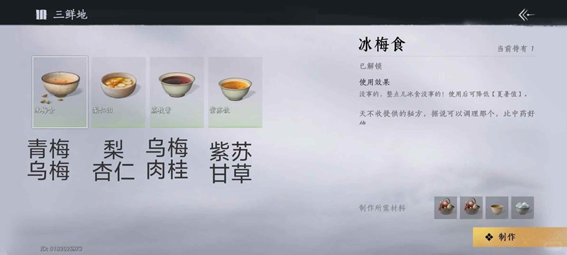 第一种咱们来到冰食摊,咱们选胡椒和芭蕉,可以得到好蕉绿水,再随便放俩不相关的食材,就会变成一碗平平无奇的水!(好神秘)