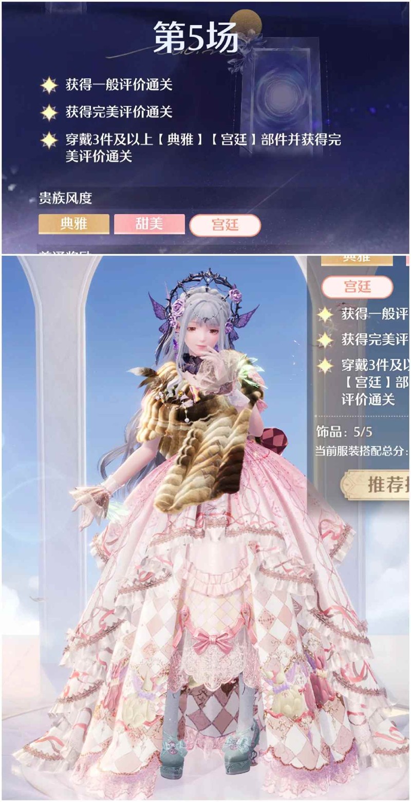 第五关:典雅 宫廷 三件 这关的套装是玩偶套 有玩偶套的宝宝可直接一键通关