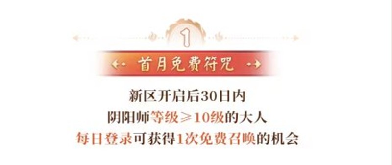 新区开启后30日内阴阳师等级>10级的大人每日登录可获得1次免费召唤的机会。
