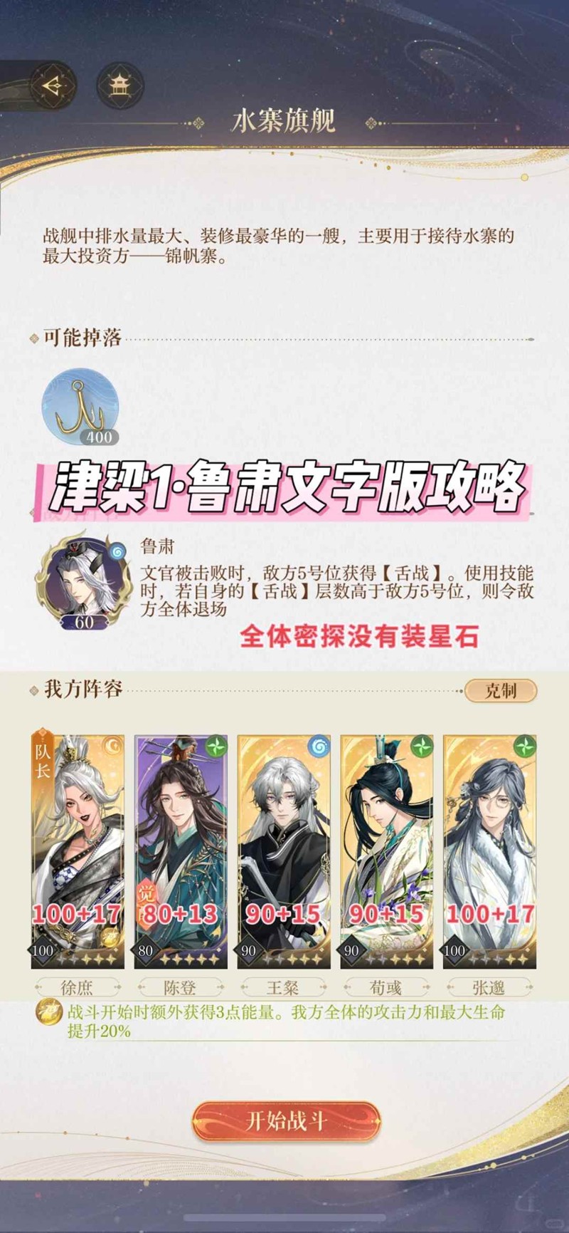 以上就是如鸢津梁1怎么过攻略,江东万里船鲁肃文字版攻略的全部内容了,更多游戏资讯,攻略内容敬请关注,您的支持是我们努力的动力!