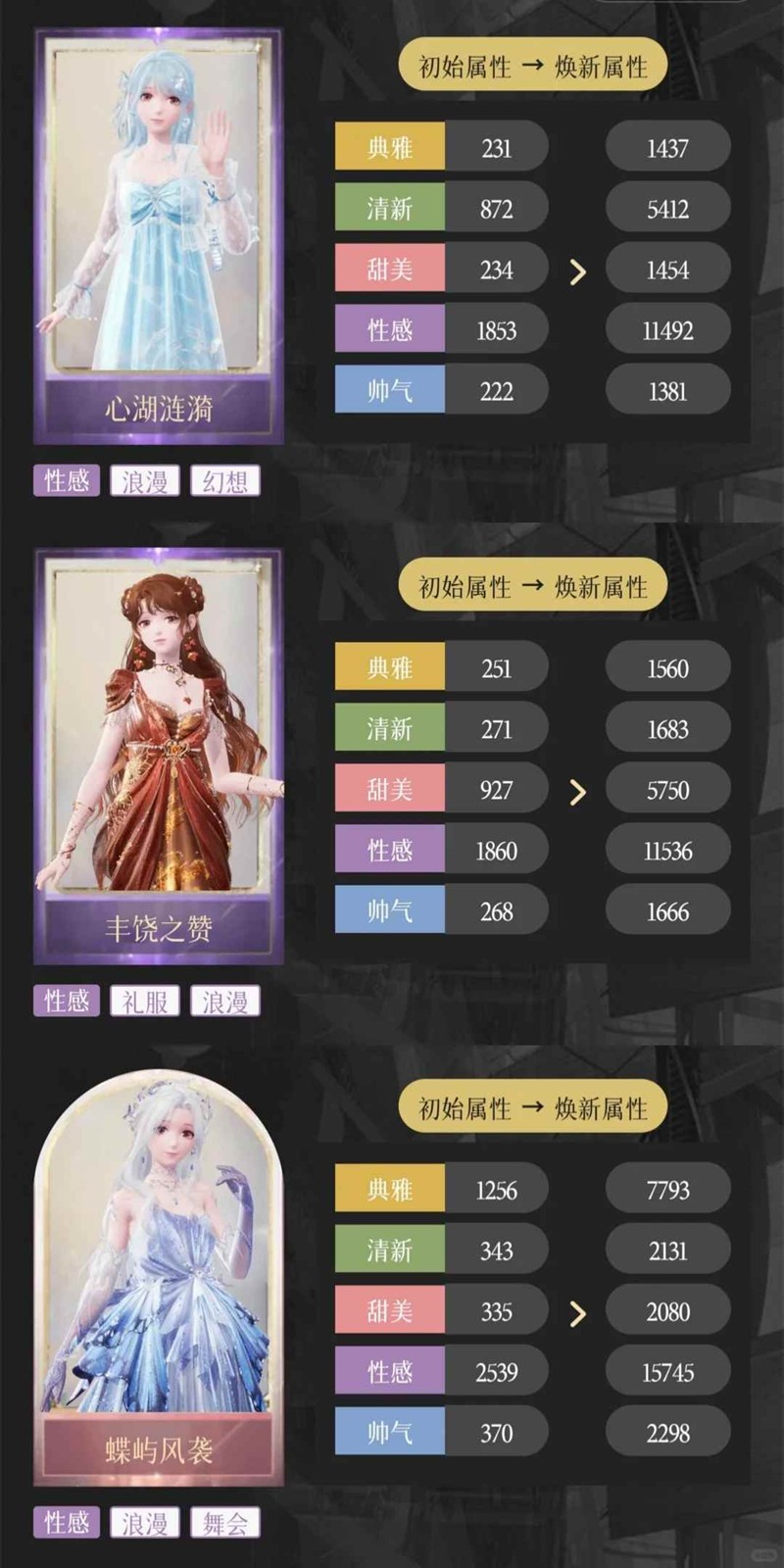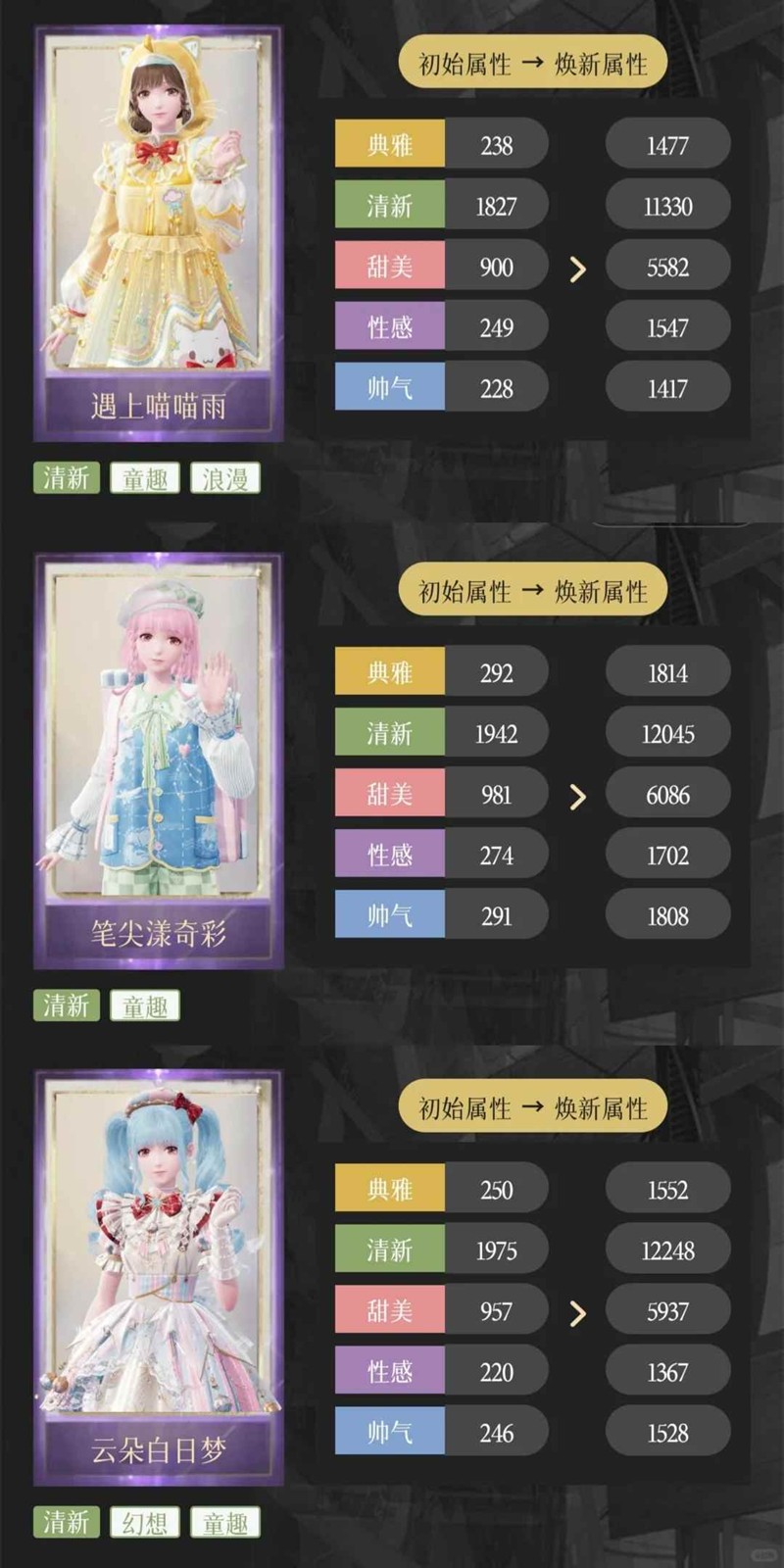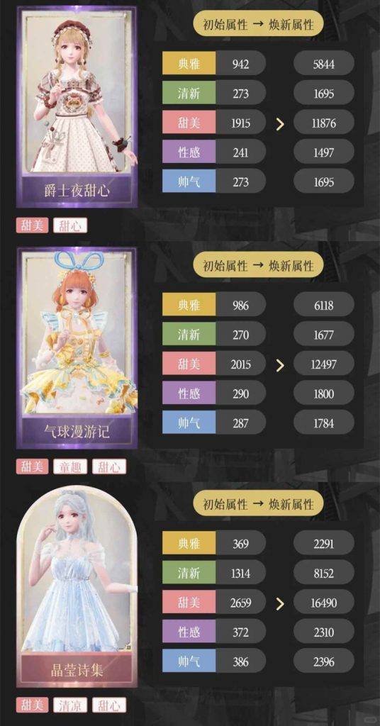 符合条件的服装有【爵士夜甜心】【气球漫游记】【晶莹诗集】,全套焕新即可