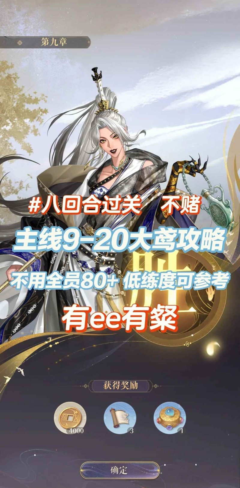 以上就是如鸢主线9-20打大鸢攻略低练度玩家可参考的全部内容了,更多游戏资讯,攻略内容敬请关注,您的支持是我们努力的动力!