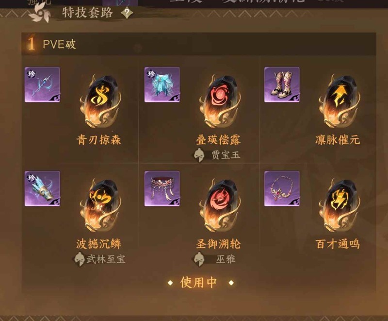 套路一:流年•碧叶同心珏(探索获取)+林黛玉•绛珠仙草•木石盟(六人本老四加工)/王熙凤•风月宝鉴(六人本老三)+贾宝玉•通灵宝玉•木石盟(六人本老二加工)+百炼两件套
