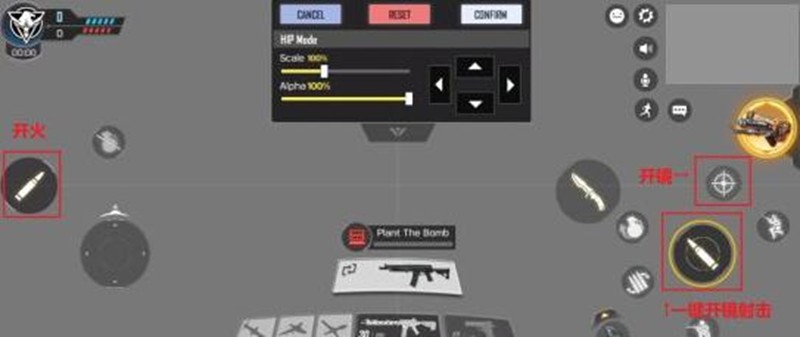 建议进入CUSTOMIZE界面进行按键自定义。以默认界面为例,左侧开火键在不开镜时是腰射,开镜时则是机瞄射击。右侧开镜键按一下开启机瞄,再按一下关闭。可以将开火键调整到大拇指位置,把一键开镜开火键缩小后移动到食指或中指位置。