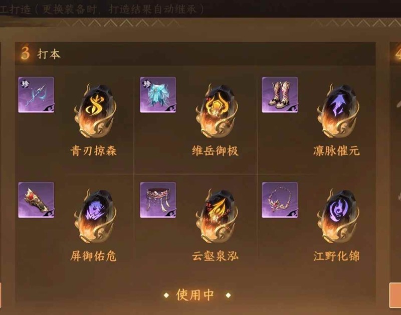 3.内功灭阵也不一定需要带,火内功可以换熔甲/木掠时纹,哪个词条好带哪个。