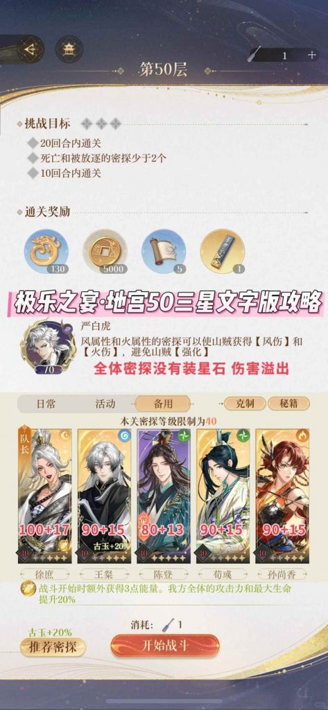 如鸢刘辩极乐之宴 地宫50三星怎么打文字版攻略