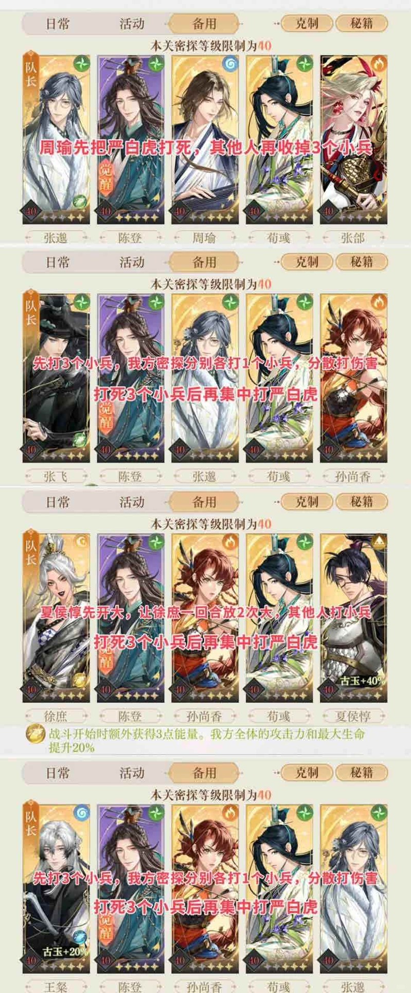 5. 香香命盘必须有普群,如果没有技群,那么香香全程不放大,不然有2个小兵受不到火属性密探伤害,没有群体香可以替换成张郃