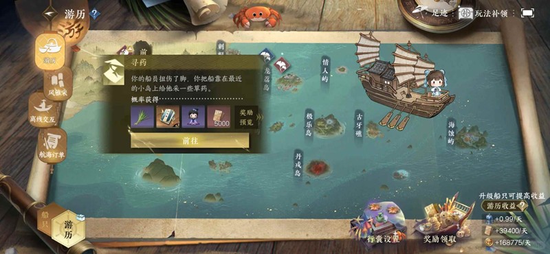 海商贸易需每周升级船只赚钱,稀有海贸通宝需要抽扭蛋机100w抽100次,然后再去抽白发