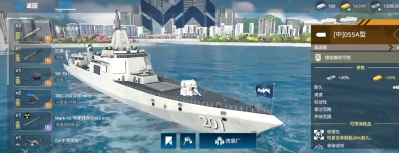 055A型驱逐舰拥有出色的耐久属性,航速表现同样可圈可点。虽然仅配备单鱼雷发射管,但在近身作战时依然能发挥重要作用。这款战舰整体性能均衡,是新手过渡期的理想选择。