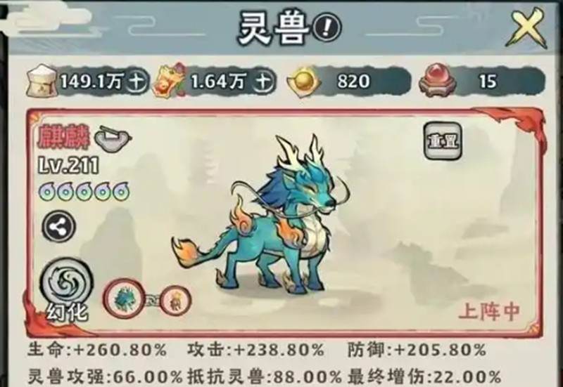 麒麟特别适合拥有金乌血脉的玩家。当触发特殊状态时,麒麟的暴击伤害能提升150%,攻速增加30%。在金乌血脉的加持下,这些属性还能得到进一步提升,让麒麟成为爆发输出的绝佳选择。