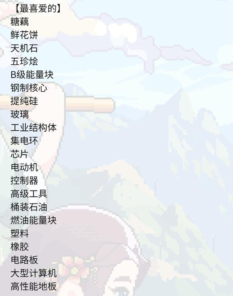 送礼是提升好感度的主要方式,每天只能送一次礼物。柴霏霏最喜欢的礼物包括糖藕、鲜花饼、天机石等传统物品,以及电动机、电路板、B级燃油能量块等工业品。次一级的礼物有雪霞羹、香皂、螺丝等。需要注意的是,酒类、野菜和兽皮会降低好感度,要避免赠送。