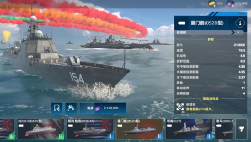 当玩家等级达到5级后,建议更换为厦门级驱逐舰。这艘舰船不仅拥有优秀的耐久度,还能装备更多火箭炮武器。其独特的隐身属性在战斗中能提供额外的战术优势,帮助玩家更好地隐蔽自己。