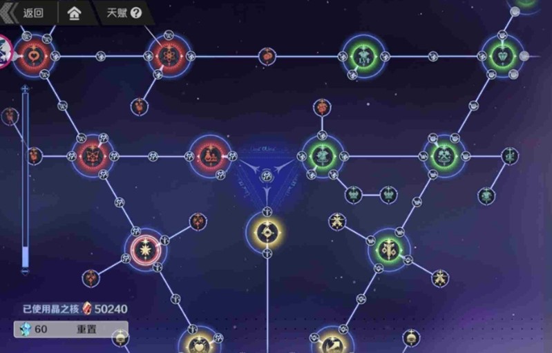 刃境的天赋系统由局外功能区、局内功能区和战斗天赋三大板块组成。局外功能区位于画面右上角,主要提供全局性的增益效果;局内功能区在左上角,影响每局游戏中的功能性表现;战斗天赋则分布在下方区域,直接关系到战斗能力的提升。所有天赋都需要消耗晶之核来解锁,晶之核可以通过秘境挑战和黑市购买获得。