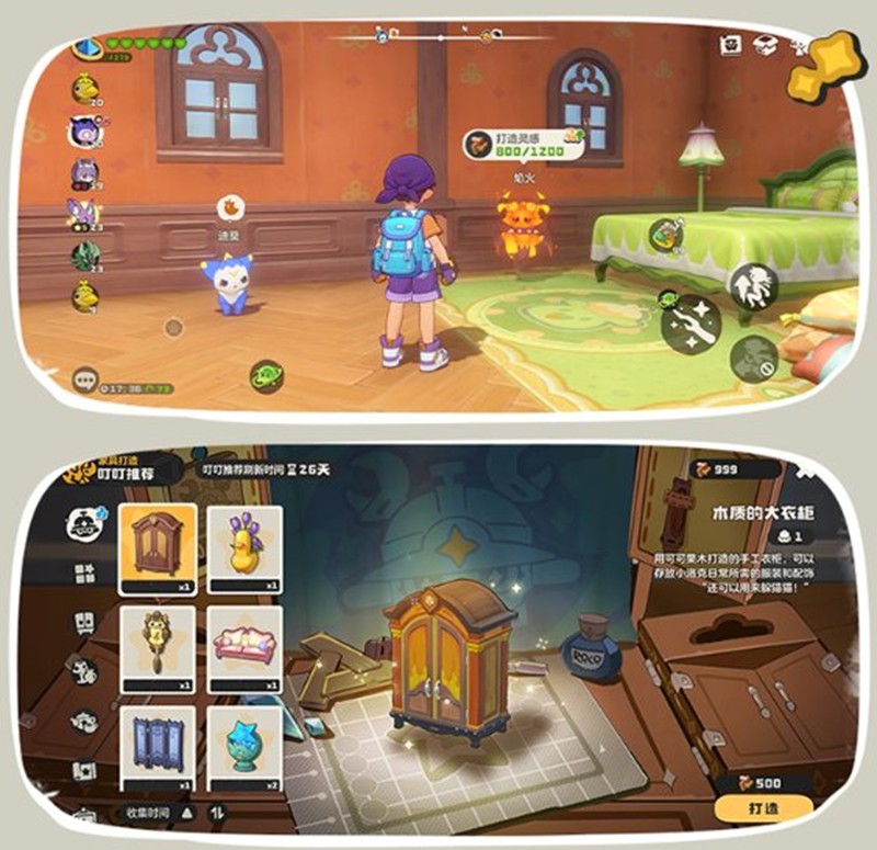 室内可装修让自己喜欢的精灵居住在家园中,照料它们可以获得“灵感”灵感可用于打造家具在花园中种植作物,与精灵共同照顾它。