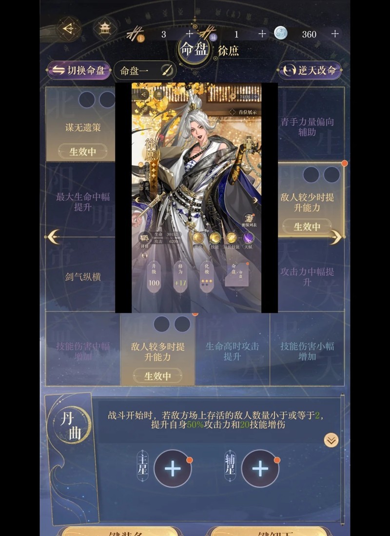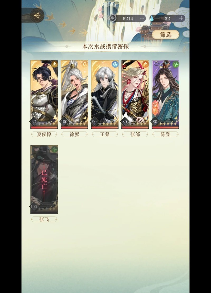注意手法:如果有普攻加一颗能量的话,算好能量,可以全员开大(如徐庶3,陈登4,小花3,王粲3,夏侯惇4)可以徐庶先a,陈登放大,就可以实现全员放大