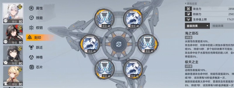 如果想让太一庚辰走辅助路线,海之泪石刻印是不二之选。这套刻印不仅能提高角色的生存能力,还能为队友提供各种增益效果。后三位同样推荐极天刻印,这套万金油刻印在辅助流中也能发挥不错的效果,保证太一庚辰在辅助之余仍有一定输出能力。