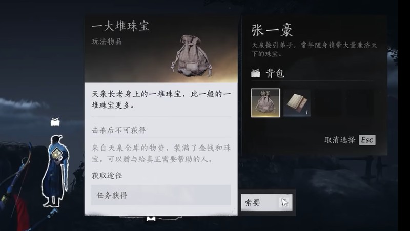 天全长老会委托你去找张一豪讨要珠宝。这个任务需要和张一豪进行战斗,击败他后就能获得珠宝。把这些战利品交给天全长老,就能获得不义之财作为奖励。