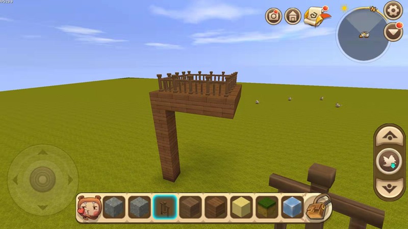 可以先搭建一根高度超过8个方块的柱子,然后在柱子顶部建造5×5大小的落叶松木地板。地板四周要围上一圈木栅栏作为防护栏。