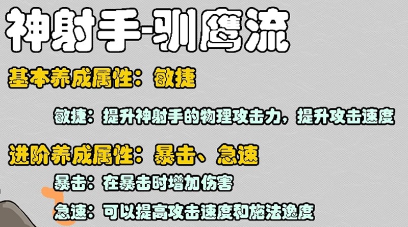 神射手职业主要依赖暴击属性,建议将60%的属性点分配给暴击。御兽派神射手需要45%的幸运属性来触发特殊效果,同时45%的精通等级能提升宠物协同作战能力。鹰流派神射手则需要80%暴击配合25%急速,确保技能快速释放的同时保持高爆发伤害。