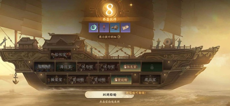 注意:升级船只钱不够的话可以去接p8的航海订单,一次能赚7.5w,或者去探索也可以