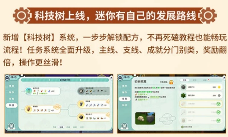 迷你世界机械时代版本带来了全新的游戏体验,这次更新不仅加入了科技树系统,还对任务、货币和战斗系统进行了全面优化。那么迷你世界机械时代更新了什么?机械时代更新介绍,一起来看看吧~