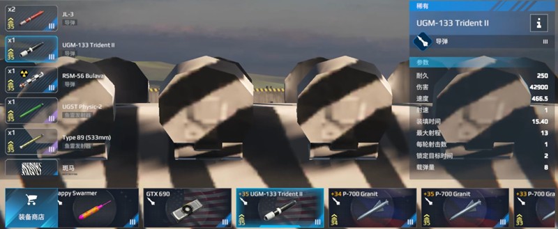 这款导弹以极快的射速和装填速度著称,虽然单发伤害不高,但持续的火力压制能给敌人带来很大困扰,特别适合游击战术的潜艇使用。