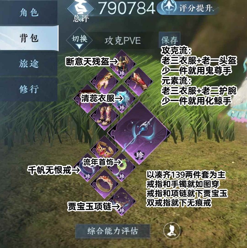 林黛玉/王熙凤+流年+贾宝玉项链/千帆无恨戒 先凑出139两件套 然后再选出三独珍穿戴即可