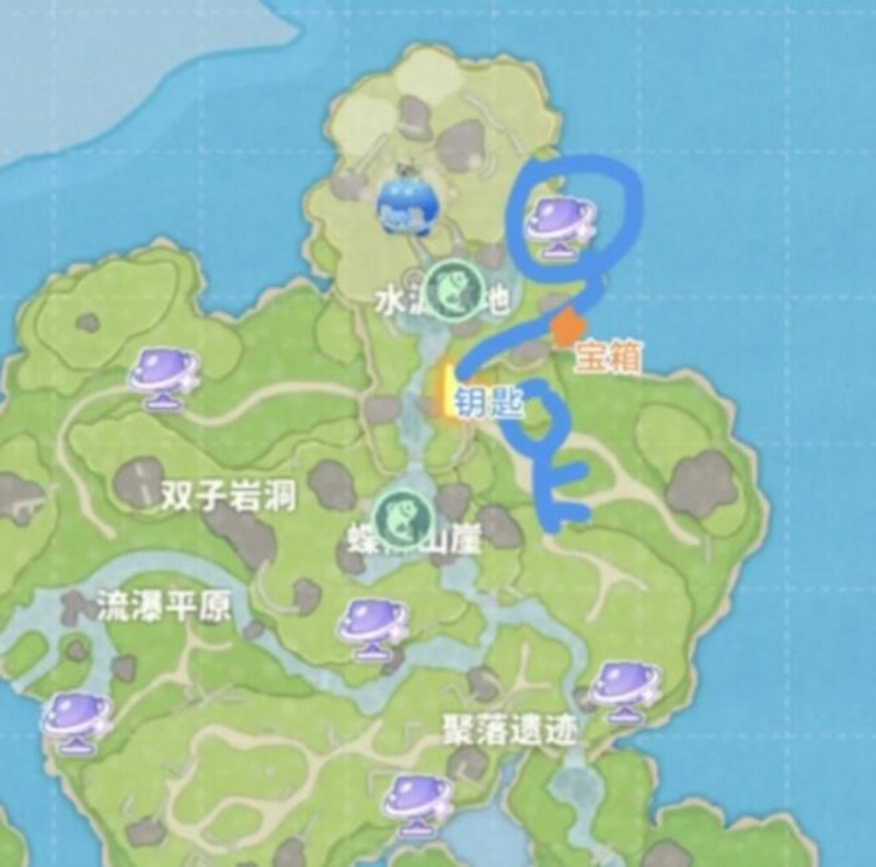 玩家来到溪柳小岛的叠岸山崖区域后,沿着指定路线一直向前走就能获得钥匙。继续前进到岩石区域,就能发现第一组宝箱的具体位置。