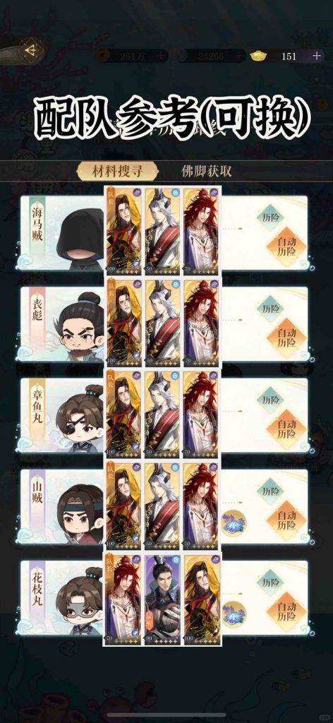 是配队建议(可换),前四关历练可带鲁肃,可以跳过战斗节省时间(类似阿蝉的作用),第五关谨慎起见我换了颜良;