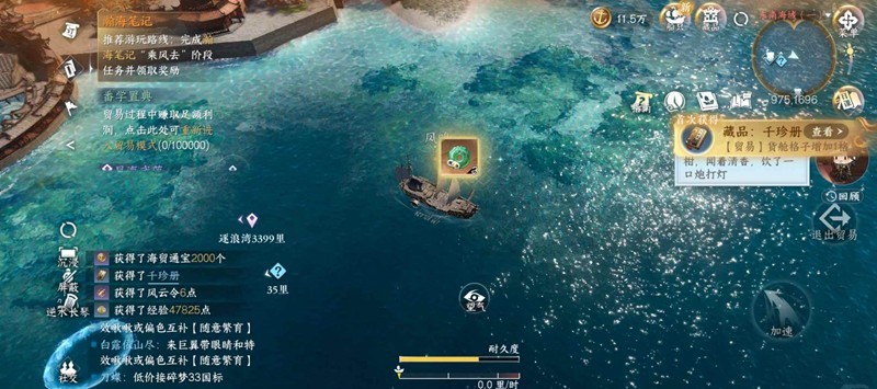 第一个格子:东南海域(973,1688)完成奇闻,可获得藏品:千珍册,能增加一个货舱格子!一定要去做!