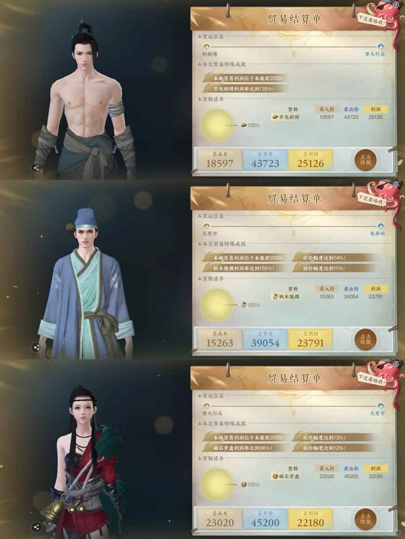 以上就是逆水寒手游今日海商贸易赚钱推荐及3个货舱格子攻略的全部内容了,更多游戏资讯,攻略内容敬请关注,您的支持是我们努力的动力!