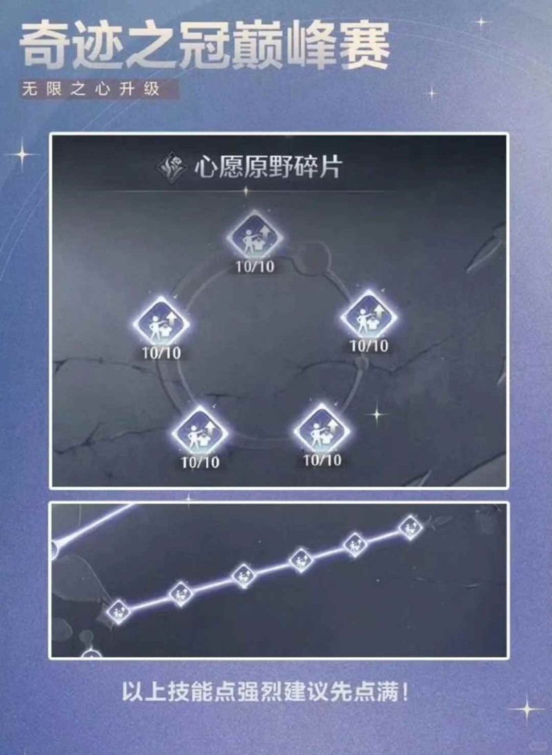 > 优先点满无限之心中能提供搭配分数加成的技能点