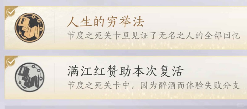 已经完成节度之死任务的,可以通过任务回溯重新开始任务,查缺补漏即可完成全见闻、全成就