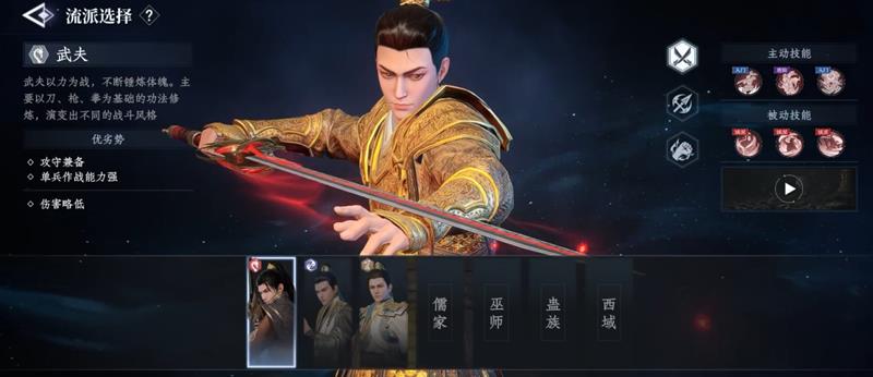 武夫是典型的近战职业,配备双刀、长枪和拳套三种武器。这个职业攻守平衡,拥有强大的单体作战能力。武夫的技能招式气势磅礴,需要在贴身距离才能发挥最大威力,因此对战斗时机的把握尤为重要。