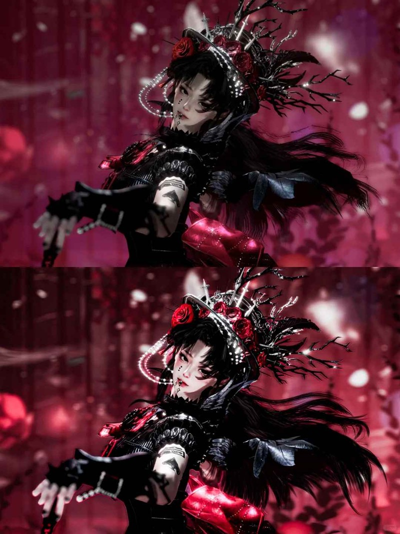 水墨沉烟[澜都(1035,607)夏知之对话解锁]:乌鱼墨汁-桃花雪-乌鱼墨汁-山栀花(装饰)