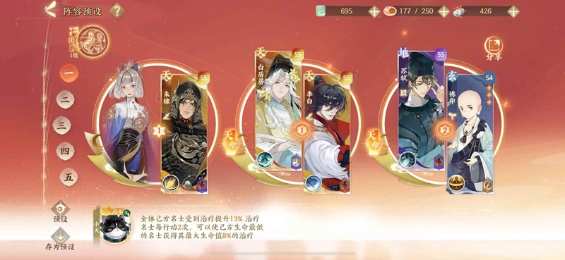 4.养卡前期先集中一个队养,不要端水养,万用可以先给李白和白居易升星,李白四星写伤害白居易五星显奶量