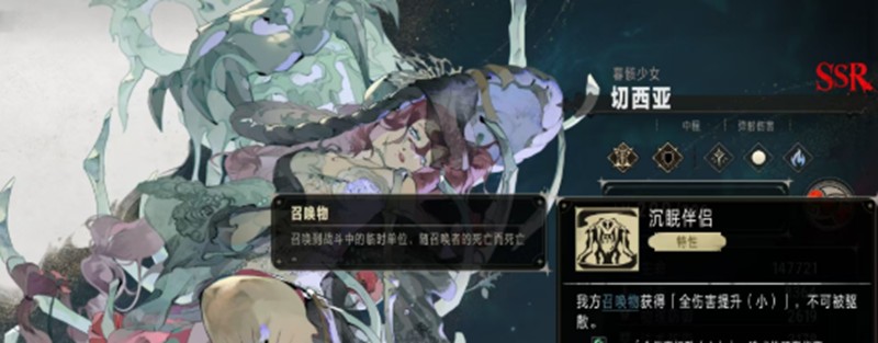 沉眠伴侣能为我方召唤物提供15%的伤害加成,无论是法术攻击还是物理攻击都能获得增益效果。这个技能让切西亚在搭配召唤系队友时能显著提升队伍的整体输出能力。
