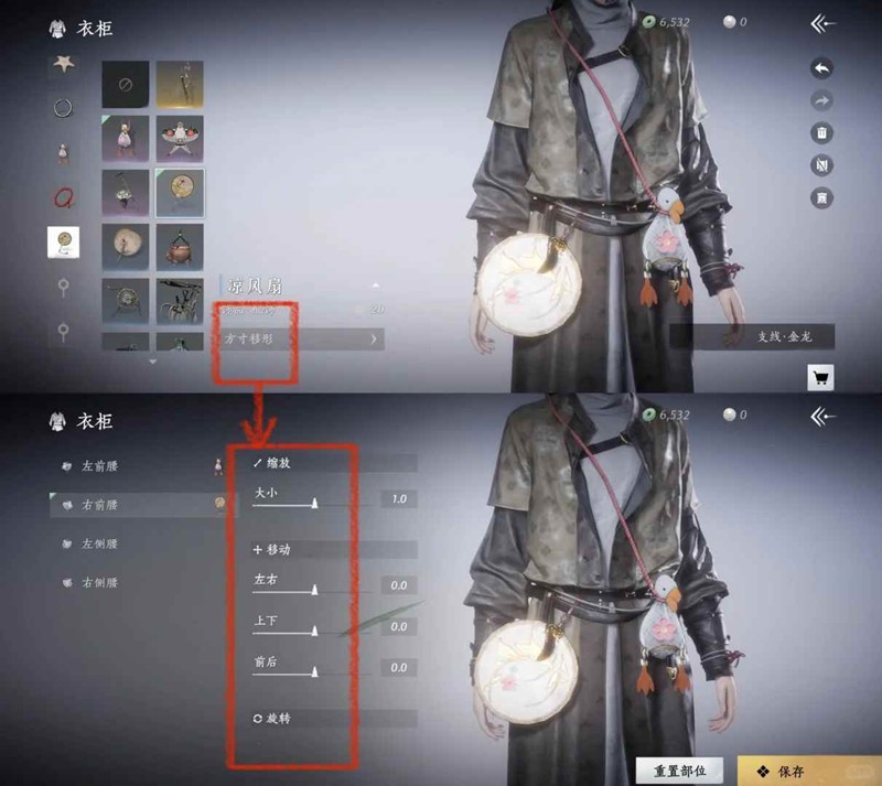只要饰品拥有方寸移形功能,就可以进行大小、位置、角度的变化