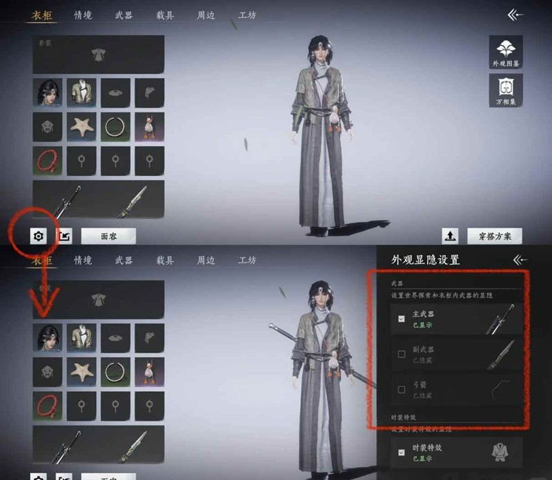 在左下角设置按钮,可进行三种武器的显示和隐藏