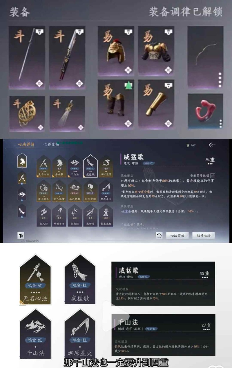 总结:纯血无名就斗易,心法带流派心法,缺一个少一个的就带易水歌和六重征人归。