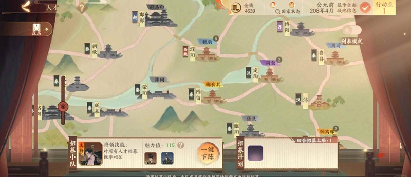 其次,还有两个外交人才值得招募,这两个出现的时间都是接近第二个任务的时候,大多数我们这时间都会拿下了睢阳,正好能够招募。一个是郦食其,另一个是张良。这两个重量级应该都听过。还是那句话,不要死磕,能招就招,不能也不要可惜,因为到了第二个任务郦食其都会在的,而张良就算走了,大多数都是往南边桂林那里走的,等后面还是有机会招回来的。