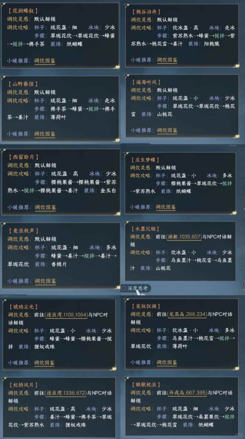 以上就是逆水寒手游清饮百味活动调饮图鉴大全的全部内容了,更多游戏资讯,攻略内容敬请关注,您的支持是我们努力的动力!