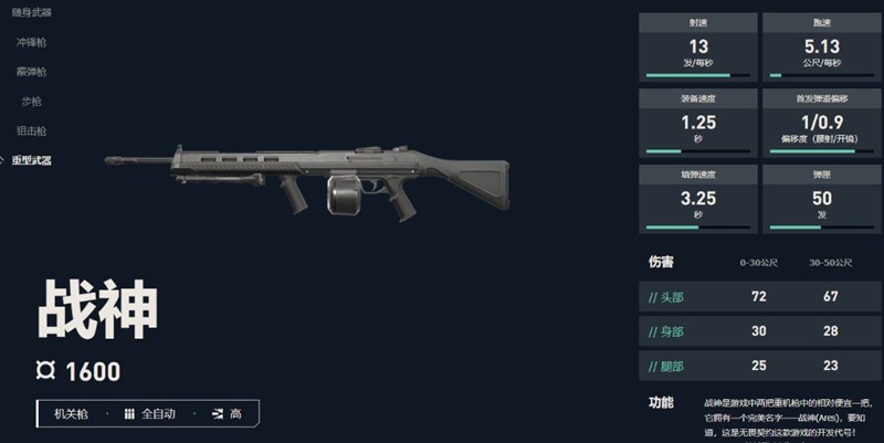 战神最适合在中近距离作战,特别是在狭窄区域能发挥出强大的穿透力。但在远距离对枪时,由于后坐力大和伤害衰减明显,这把武器的表现会大打折扣。经济局或过渡时期使用战神是个不错的选择。
