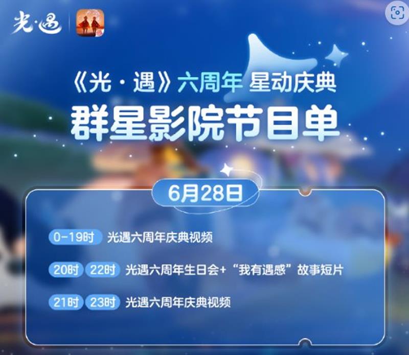 从6月28日起,群星影院将轮播六周年庆典视频和生日会。特别值得一提的是,6月28日20:00将有生日会直播,届时群星影院将同步转播现场盛况,参与弹幕互动还有机会获得限时魔法礼包。