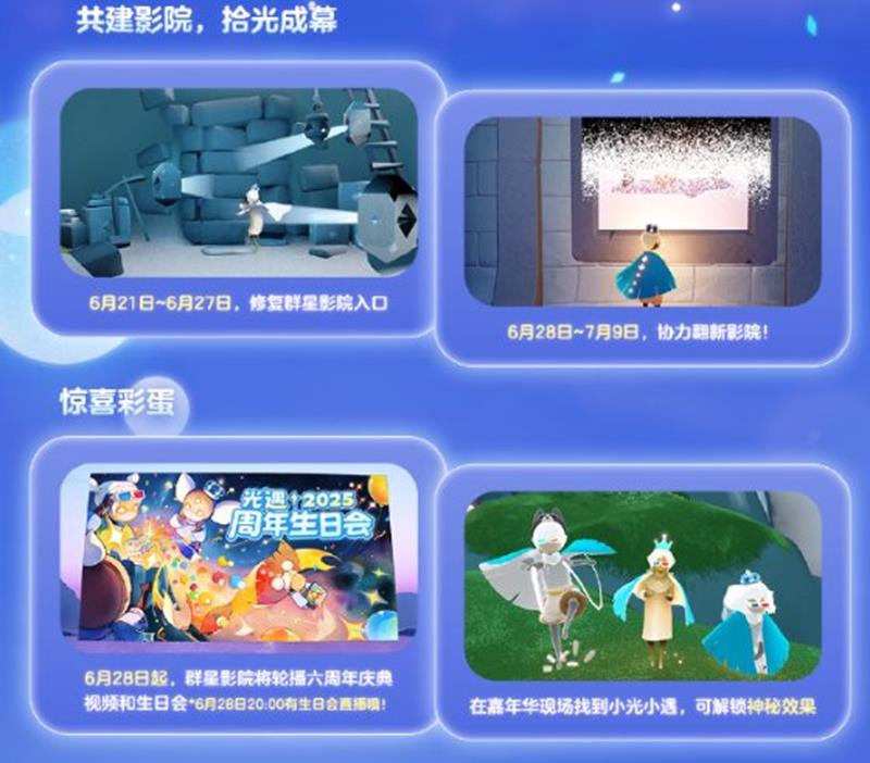 《光遇》六周年群星影院节目单已经公布,精彩不容错过。让我们一起在光影中回顾过去六年的美好回忆,展望未来的更多可能。
