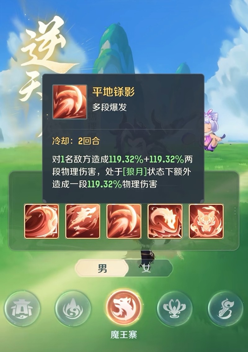 平地铩影是魔王寨的重要爆发技能,能够对目标造成两段高倍率伤害。在狼月状态下,这个技能会额外追加一段同等倍率的伤害,使得总伤害量大幅提升。合理利用这个技能可以在短时间内对敌人造成毁灭性打击。