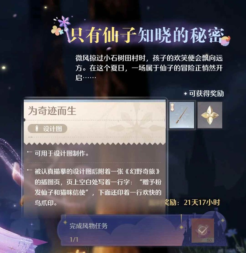 兑换星光小铺限时星华的过载的灵感面饰,为奇迹而生法杖是本次活动风物任务的奖励