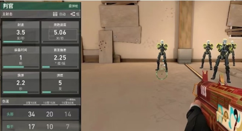 判官作为T0级别的霰弹枪,拥有全自动射击模式,售价1850誉币。这把枪的最大优势在于3.5发/秒的超高射速,近距离作战时即使不刻意瞄准头部也能轻松秒杀敌人。特别适合搭配雷兹的超级跳或霓虹的闪电滑行等突进技能使用,在混战中能发挥出惊人威力。不过判官的射程较短,超过15米伤害就会大幅衰减,而且价格偏高,在经济局使用时需要谨慎考虑。