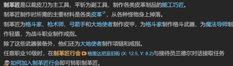 想要成为制革匠,需要先达到10级角色等级。之后前往格利达尼亚旧街的制革匠行会,找到NPC兰德尔接取转职任务。完成相关任务后就能正式成为一名制革匠。转职后系统会提供新手制革匠手册,里面包含初级配方,建议优先完成这些配方制作,不仅能熟悉操作还能获得额外经验奖励。